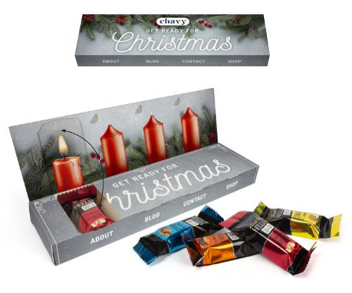Zünden Sie sich ein Lichtlein an und geniessen Sie edle Schokolade: Individuelle Adventskartonage mit 4 Fächern, symbolisch für die 4 Adventssonntage, jeweils befüllt mit einem Lindt HELLO Mini Stick. Format ca. 21 x 6 cm.