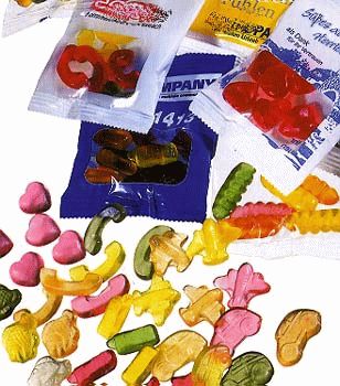 10 -12 g Fruchtgummi in individueller Sonderform in Tütchen klar oder weiss.