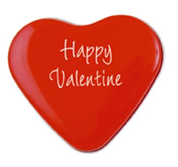 Blechdose in Herzform befüllt mit Minzdragees, Format ca. 70 x 65 x 15 mm, Dose lieferbar ort, weiß oder blank.
