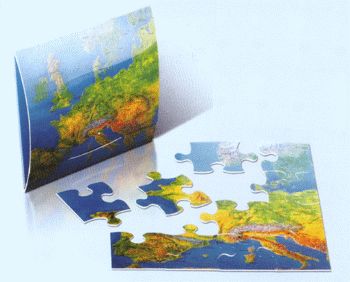 Briefchen aus weisser Kartonage bestückt mit einem kleinen 16-teiligen Puzzle, Format ca. 65 x 82 mm.