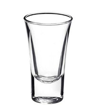 Eleganter Stamper aus Glas, eichbar mit 2 oder 4 cl, Höhe ca. 89 mm.
