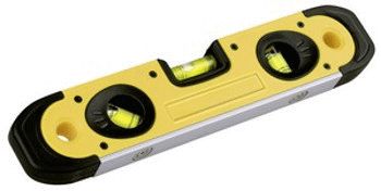 Handliche Wasserwaage aus Kunststoff und Aluminium mit 2 Magneten und 3 Libellen. Format ca. 23 x 4,5 x 2 cm.